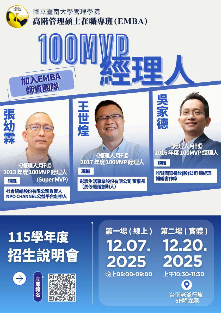 特別消息~100 MVP 經理人加入南大EMBA師資團隊!